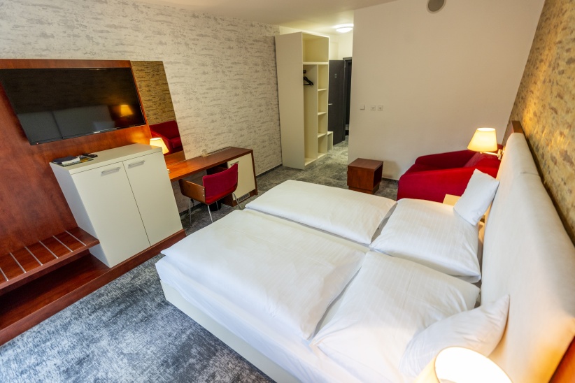 Ubytování v hotelu Srni na dobu den před konferencí a v den konání konference sme pro vás zabezpečili za zvýhodněnou cenu. Nocleh ze snídaní vás na dvojlůžkovém pokoji v hlavní budově vyjde na 1312 Kč (při obsazení pokoje dvěma osobami). Při obsazení dvojlůžkového pokoje pouze jednou osobou je cena 2214 Kč. Na hotelu nejsou žádné jednolůžkové pokoje, pouze dvojlůžkové a třílůžkové. Dvojlůžkové pokoje na depandance jsou trochu levnější 1150 Kč osoba se snídaní nebo 1900 Kč při obsazení pokoje pouze jednou osobou. Depandance je vzdalená přibližně 100 metrů od hlavní budovy a nacházejí se zde také kongresové haly. V případě ubytování pouze na jednu noc se ke každé částce připočítáva příplatek 150 Kč.