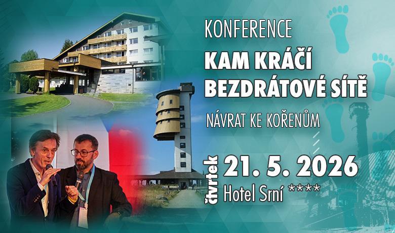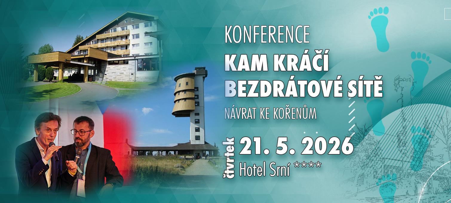 Vítejte na registračním webu konference Kam kráčí bezdrátové sítě 2026, která se bude konat již tradičně v termínu čtvrtfinále MS v hokeji, tedy 21.5.2026 v hotelu Srní ve stejnojmenné obci Srní na Šumavě. Po 2 letech úspěšných konferencí v Mlázovech, jsme se z kapacitních důvodů rozhodli přesunout konferenci na Srní. Na tuto lokalitu mají lokalní ISP spoustu krásných vzpomínek a jelikož naše akce nese podtitul návrat ke kořenům, tak naše volba byla jasná.