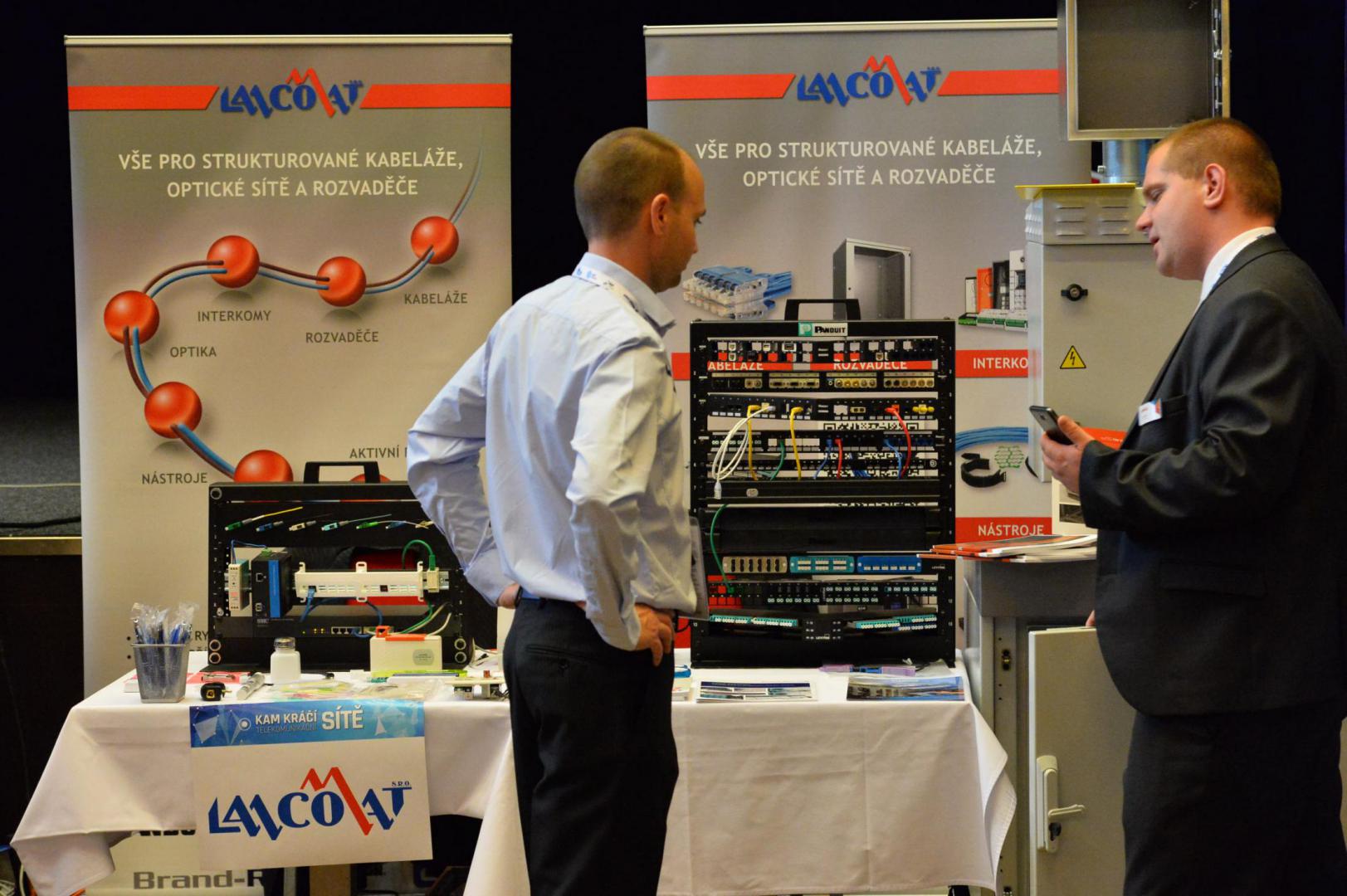 Oběd - 1. skupina/Měření teploty pomocí optického vlákna (Sitel) a soutěž ve svařování optických vláken (VanCo) - 2. skupina
